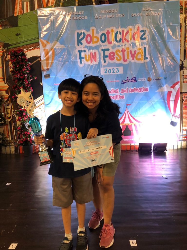Saat perlombaan coding dua Murid Global Atreya dan Astrid
